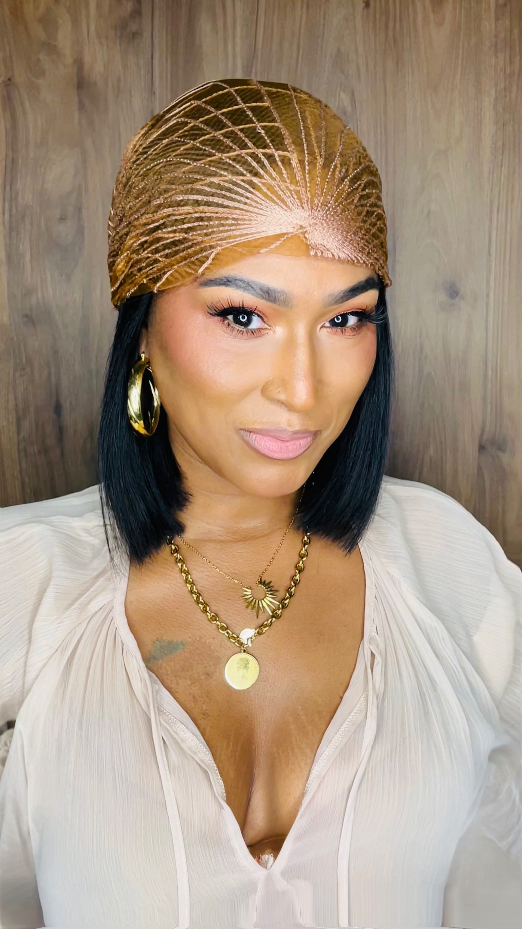 28" x 28" gold threaded viscose scarf with 8" fringe trim.