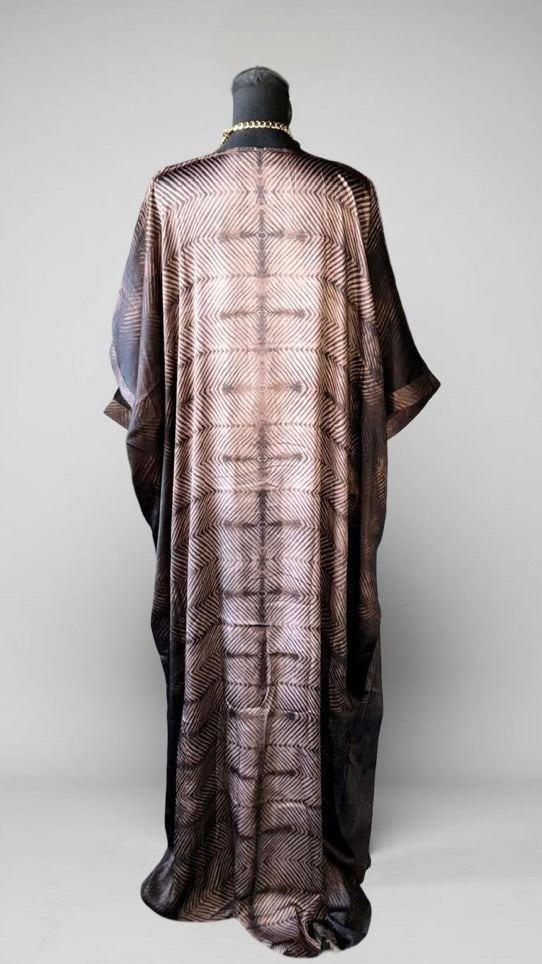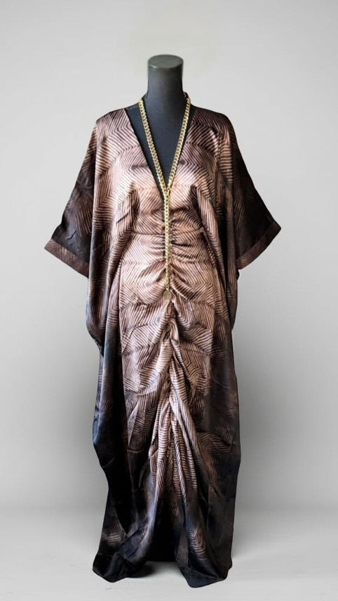 58" V•Neck kaftan with front center ruching.