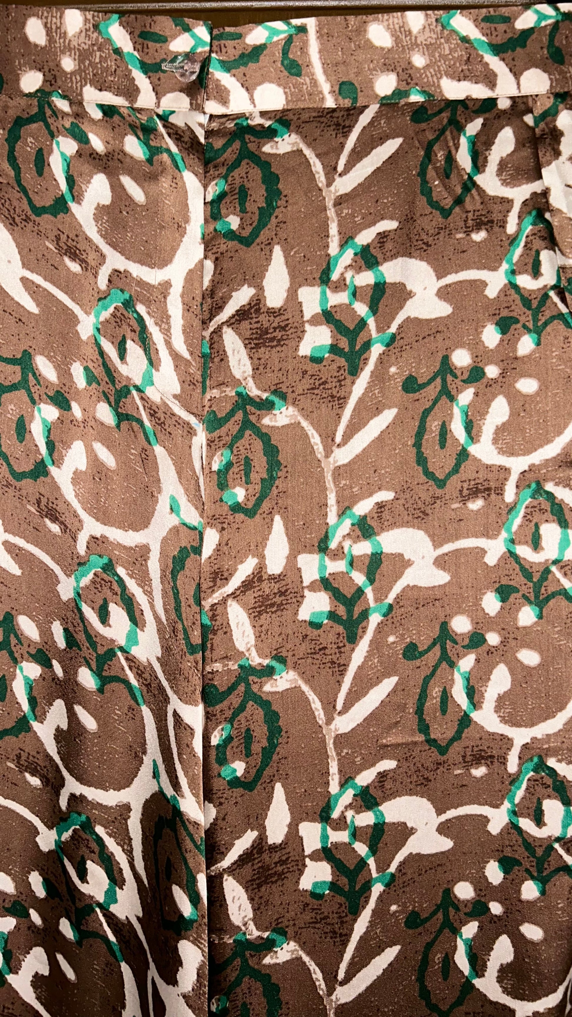 Button front pants, with elastic back and pockets.