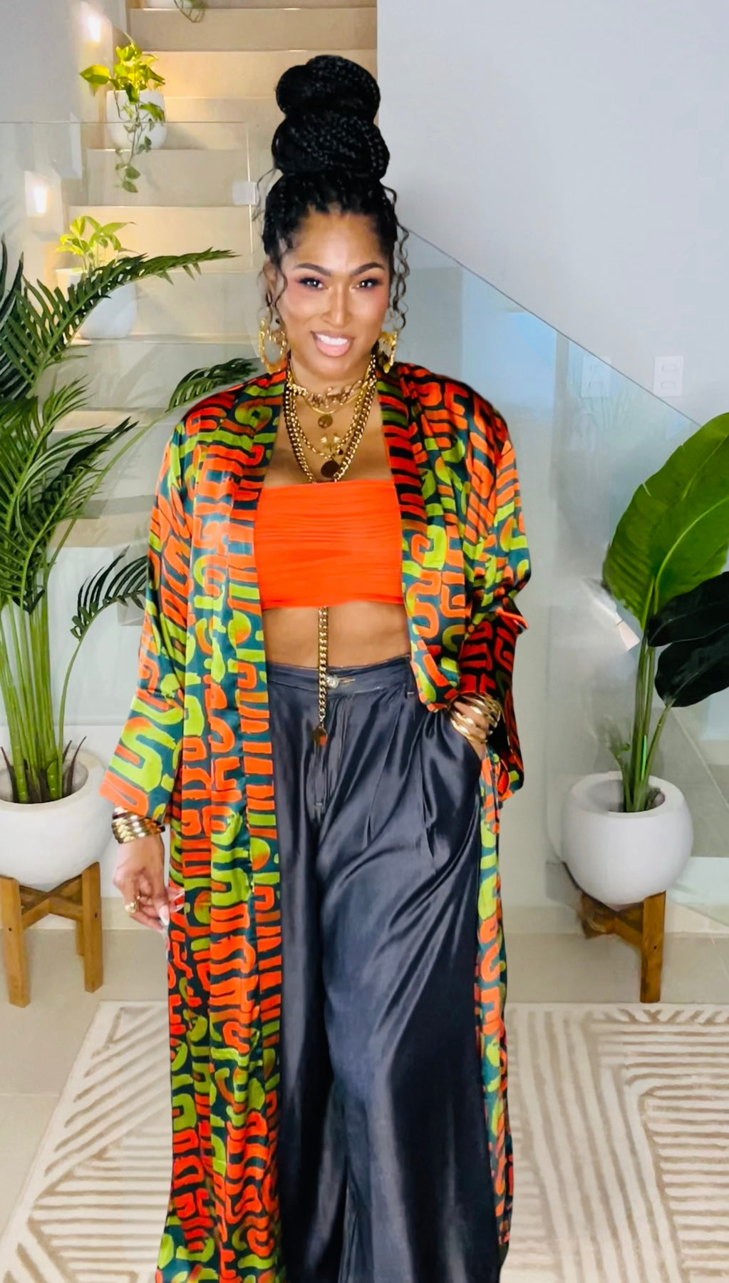 58” length kaftan with side pockets & matching sash tie.