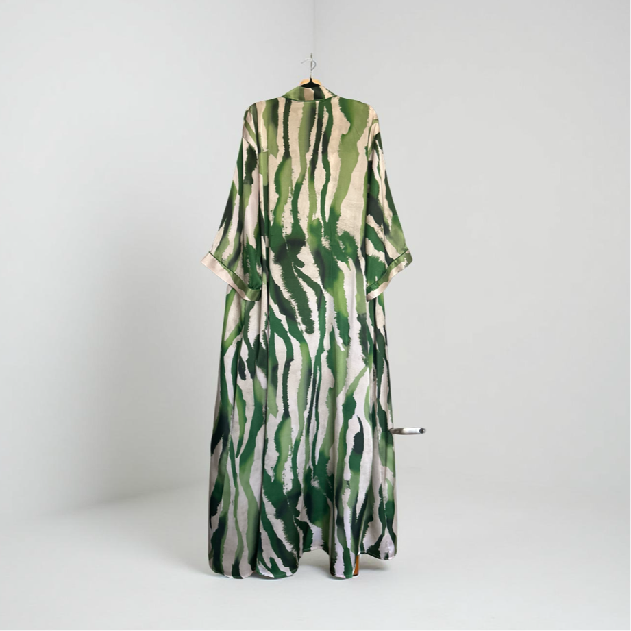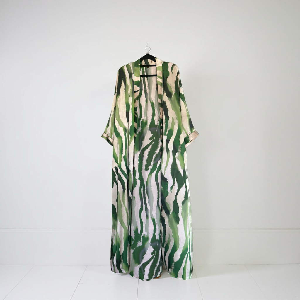 Kaftan (with side pockets) and quarter length sleeve includes matching sash tie.