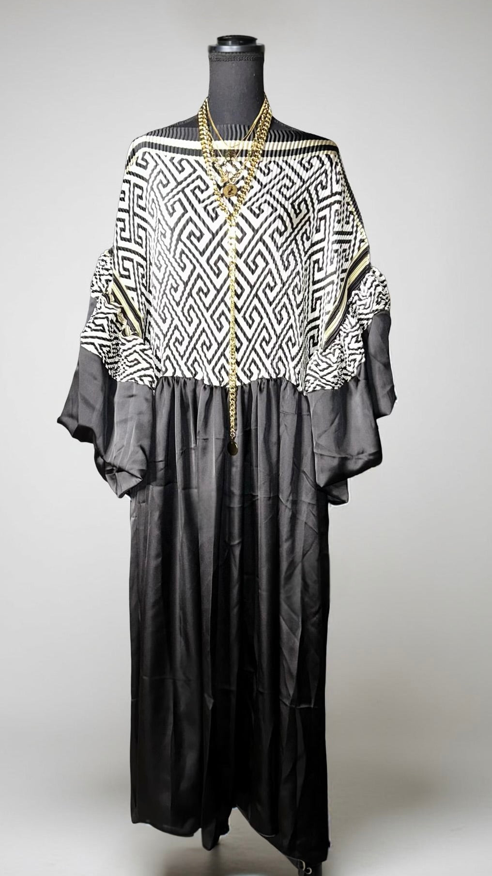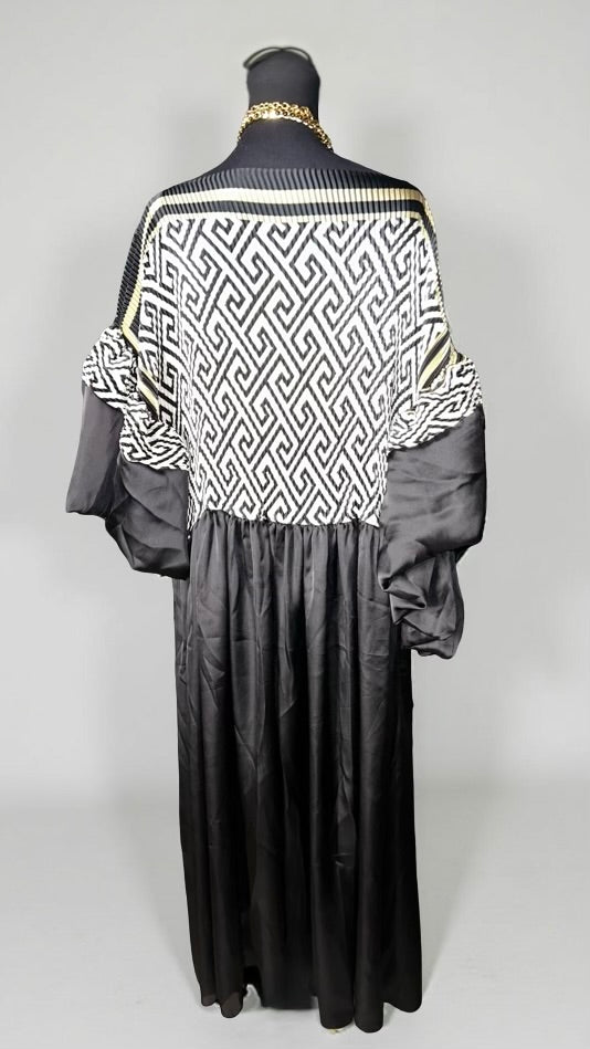 54" length, dramatic organza sleeve detail